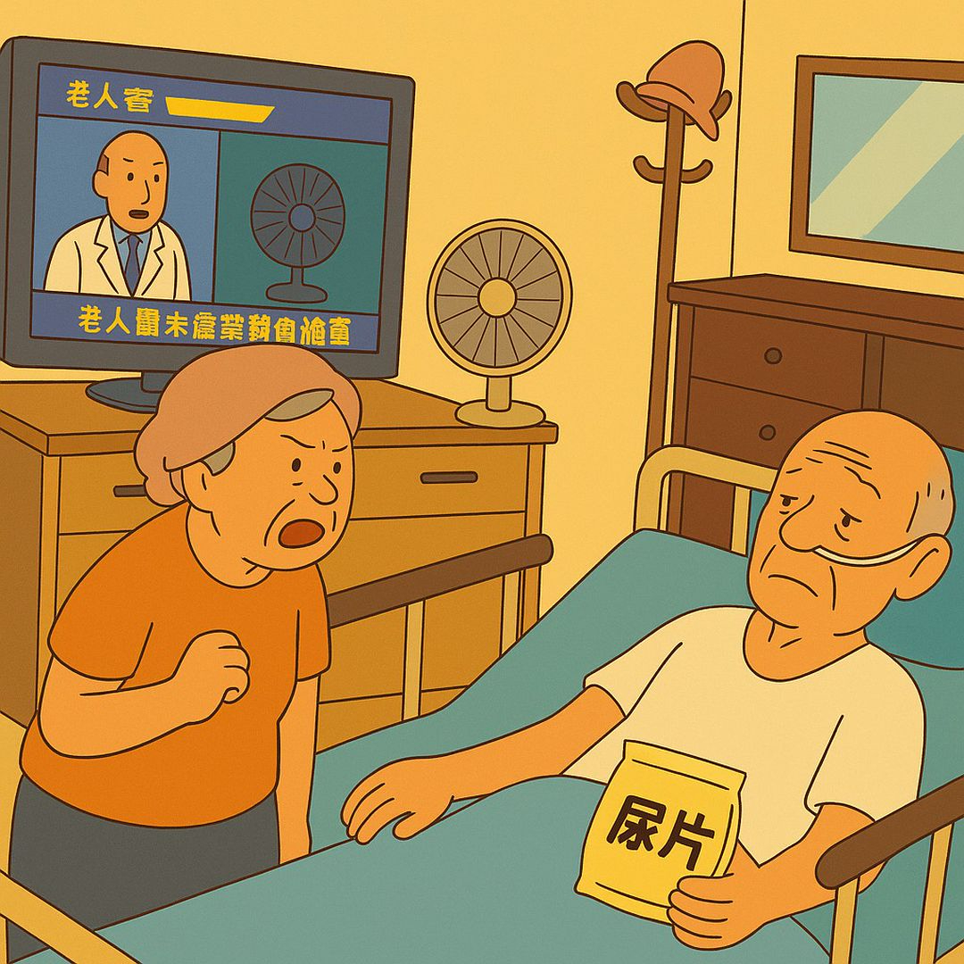 離開案家前 看到阿公還是乖乖的拿著尿片…